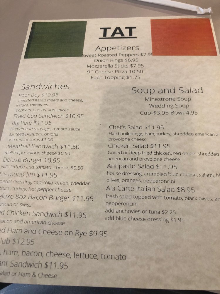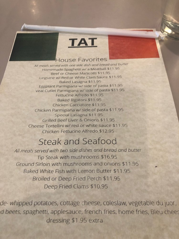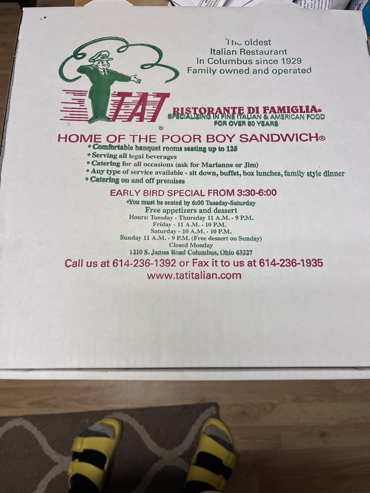 Located in Columbus, Ohio, Tat Ristorante Di Famiglia is a beloved Italian eatery offering a wide range of classic dishes. With a casual atmosphere and attentive service, this restaurant caters to families and groups alike. Their menu boasts traditional appetizers like Fried Calamari and Fried Cheese Fingers, as well as hearty sandwiches like the Big Pete and Meatball Sub. The Minestrone Soup and Chicken Salad are popular options for those looking for lighter fare. Customers rave about the authentic Italian flavors, with standout items like the pizza and cannolis receiving high praise. The restaurant's commitment to quality and affordability has garnered a loyal following, making it a go-to spot for delicious Italian cuisine.